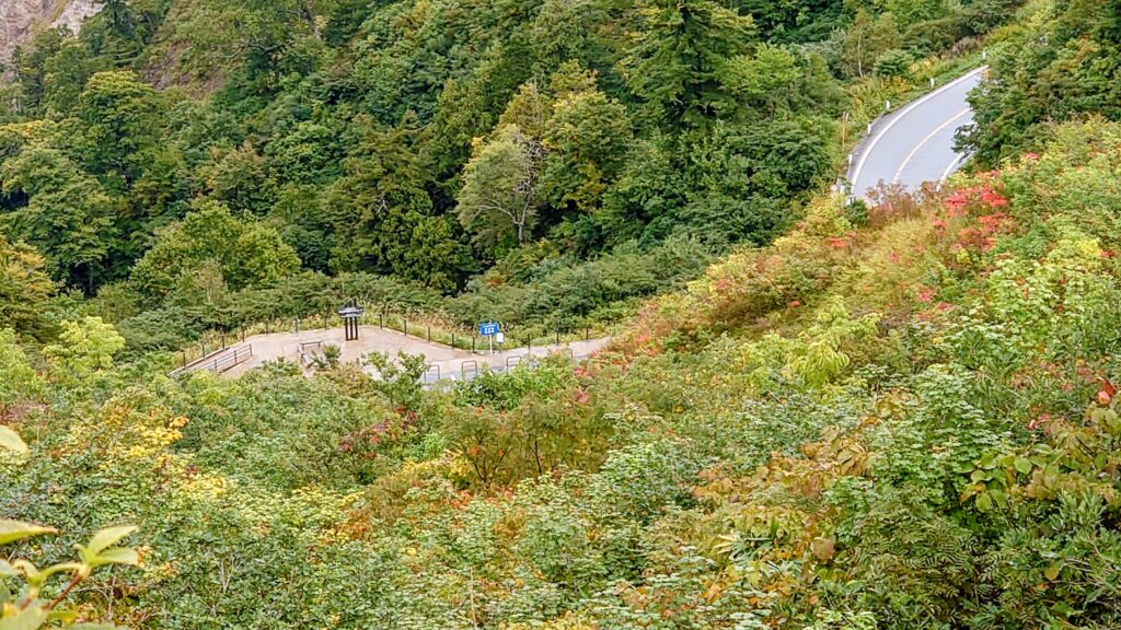 ホワイトロード紅葉情報 お知らせ 2025/10/05 展望台から三方岩岳の眺め 登山道から三方岩駐車場を見下ろす 展望台から白山方面の眺め ホワイトロードは県境の三方岩岳で紅葉が始まりました。とがの木台駐車場からの登山口を登ると展望台があります。ここから360度の眺めはなかなか良いです。白山方面はもちろん、北ア連峰も眺望出来ます。三方岩まで登れなくても、ここまでは足を運んでみて下さい。登山道は丸木の階段もあるので、運動靴をご用意下さい。